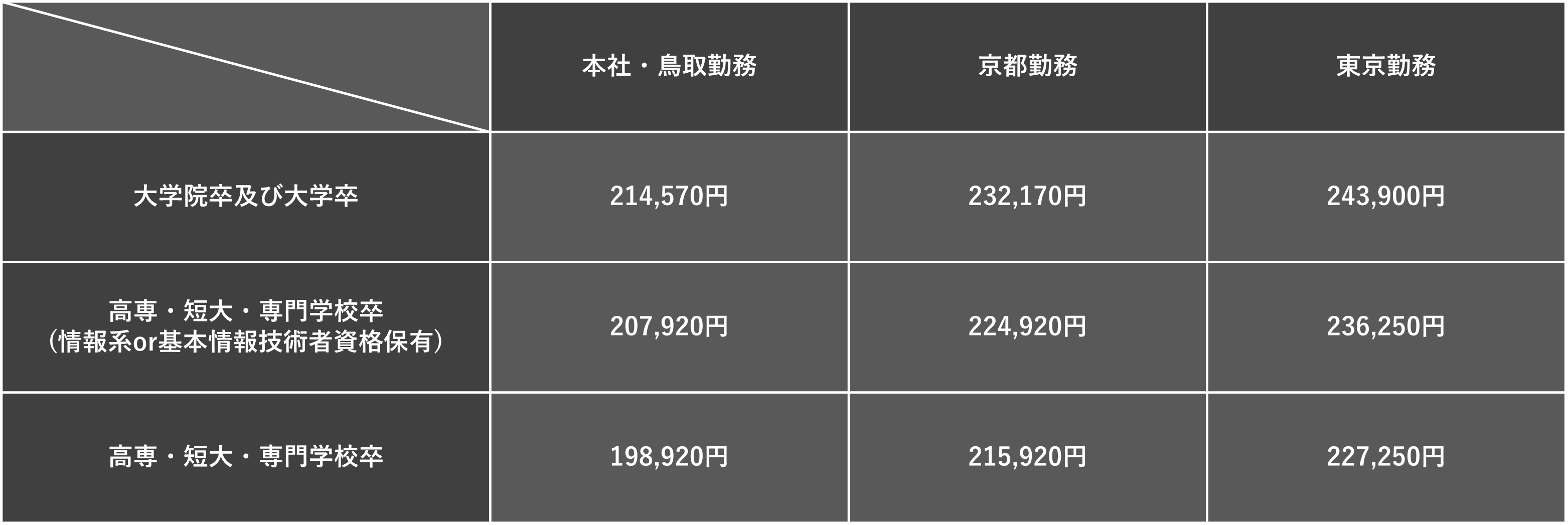 技術手当、家族手当、通勤手当、役職手当(主任級以上)、時間外手当、住宅手当